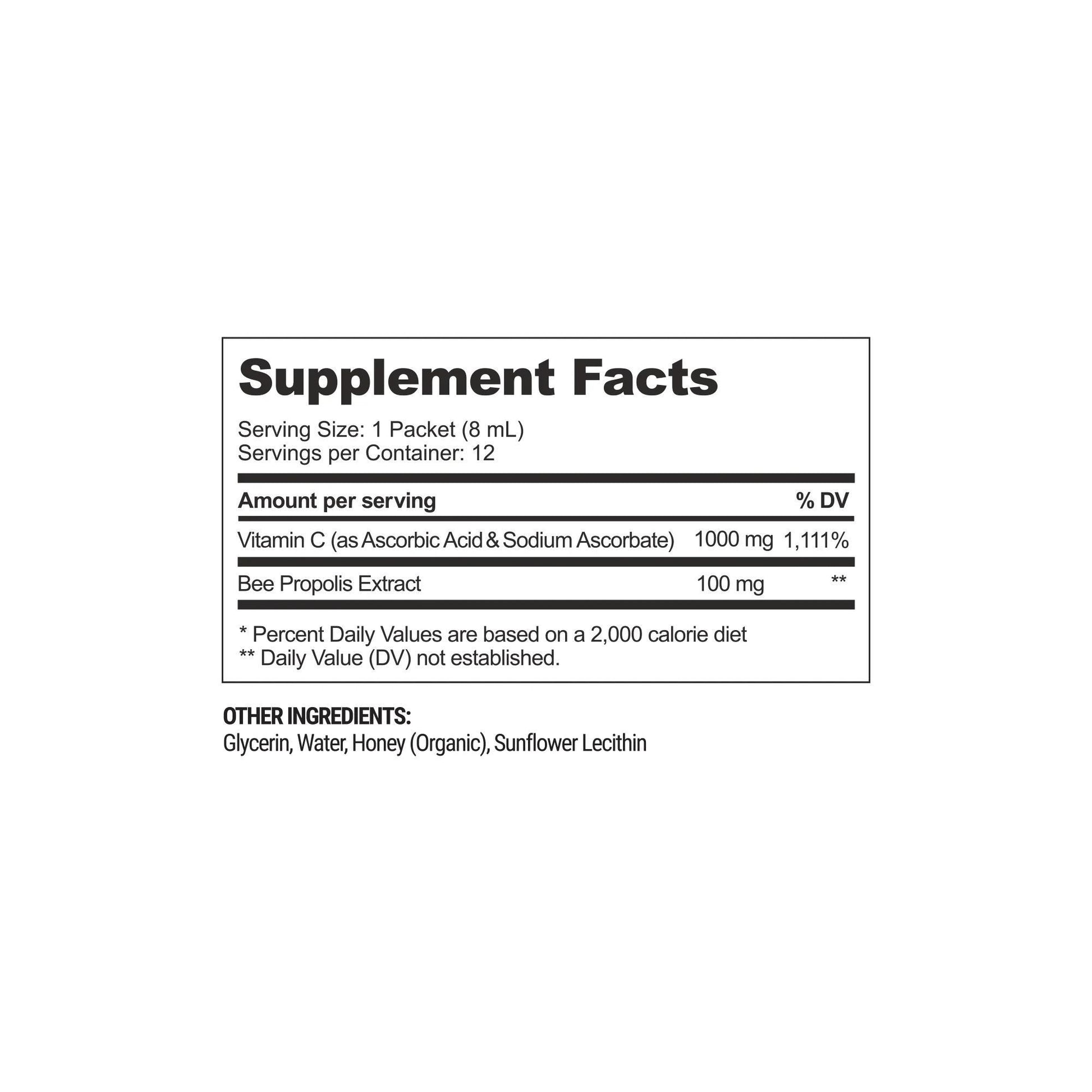 Supercharge your immune support with a liposomal formula delivering 100mg of propolis and 1,000mg of Vitamin C.