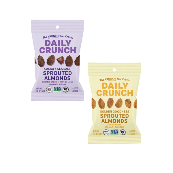 Daily Crunch Sprouted Almonds are a uniquely crunchy, sprouted nut snack that's non-GMO certified, Keto, Paleo and Vegan! These Uniquely Crunch sprouted nut snacks are clean and packed with protein.